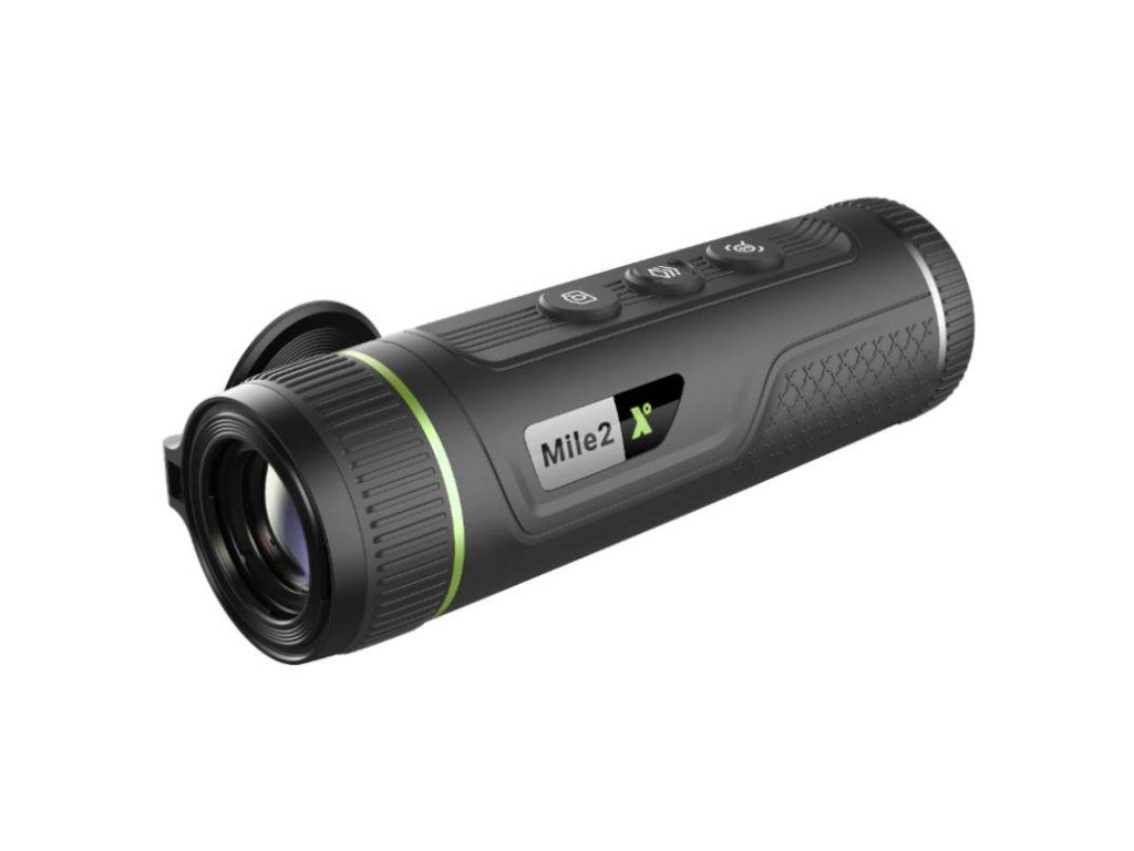 Termovízny monokulár Pixfra Mile 2 M419M je vybavený 19 mm šošovkou s manuálnym zaostrovaním, jadro s rozlíšením 384 × 288 px 12 ųm, 0,32″ OLED displej s rozlíšením 800 × 600 px, NETD≤25 mK@f/1.0, Wi-Fi Hot Spot, 16 GB interná pamäť, 1-8x digitálny zoom, výdrž batérie až 8 h – nízka spotreba energie, ochrana IP67, prevádzková teplota až -30 až 50 °C, 6 farebných režimov a detekčná vzialenosť až 1000 m.